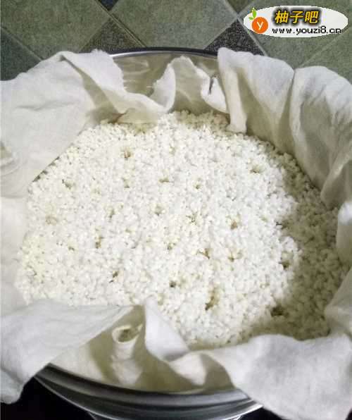 3将边缘蒸布盖在糯米上,蒸30分钟左右;