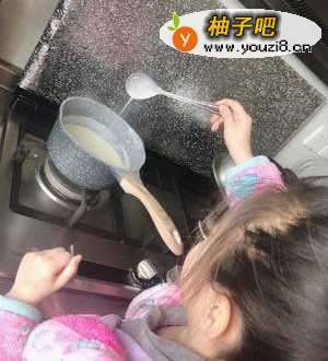 在锅中倒入牛奶、淡奶油、椰浆和糖,开小火煮至沸腾后搅拌均匀;把吉利片加入,一直搅拌至融化。
