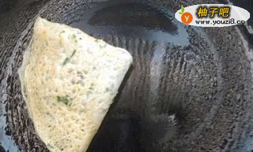 8然后将饼对折,再对折一次,如图出锅。