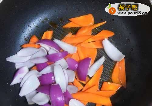 5再放入洋葱片继续翻炒。