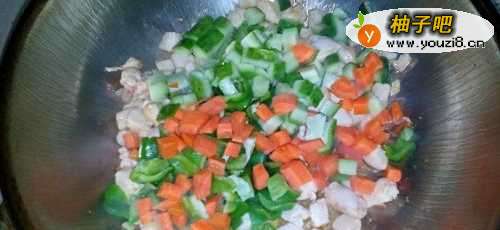 10倒入胡萝卜,黄瓜和青椒炒匀