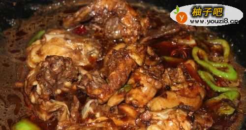 6鸡架八成熟后加入尖椒翻炒。