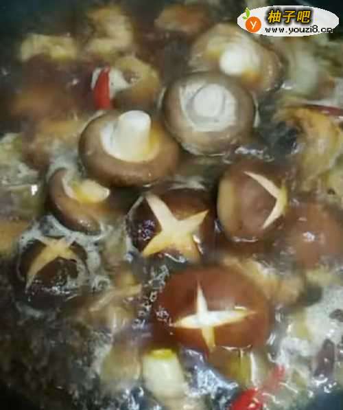 8第八,接下来用锅铲搅拌均匀,让作料充分溶解,同时把事先准备好的香菇加入到锅里,盖上锅盖,煮20分钟,具体操作和用量如图: