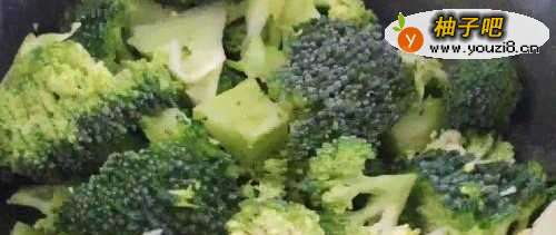 3然后在锅中放入水,水开后把掰好的西兰花,放入水中焯一下,捞出备用