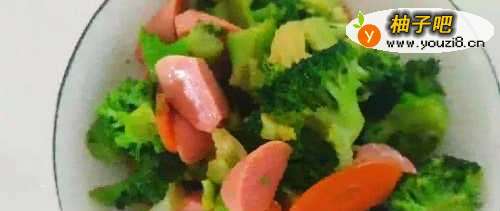 5一道色香味俱全的西兰花炒火腿肠就做好了!