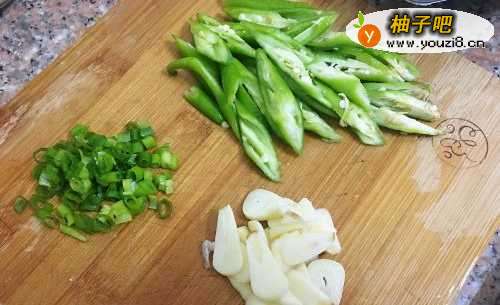 33. 线椒切片,蒜切片,葱切成末。