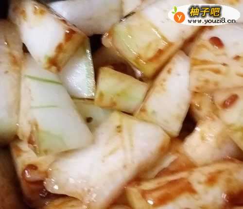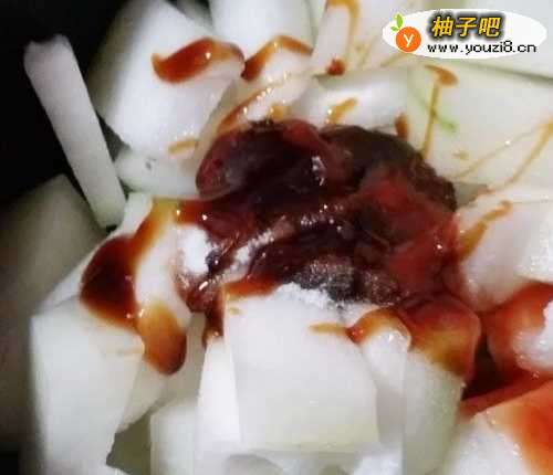 8把切好的冬瓜放入锅中,然后放入适量豆瓣酱等