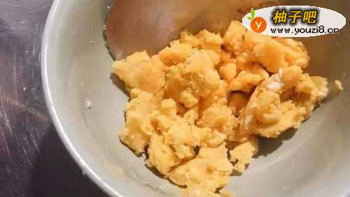 99、将蛋黄压成细碎胳此。
