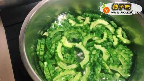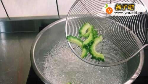 66、将苦瓜放入滚水川烫2-3分钟。