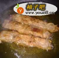 6将锅烧热,下清油,待油温六成热时,放入五香卷,中火炸至呈金黄色捞起沥油。