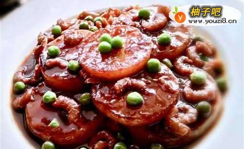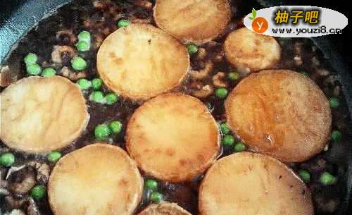 4水滚后倒入白萝卜一起闷煮到熟略收汁,最后撒上青豆仁即可。