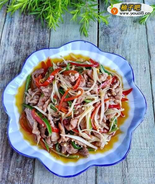 家里买了些仔姜,一时半会儿吃不完。我担心放坏了,所以今天继续用仔姜,辣椒等炒肉,炒出来的仔姜肉丝依然十分开胃。