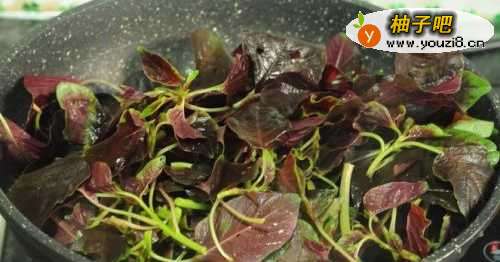 3把沥干水的苋菜放入锅里,大火翻炒至变软