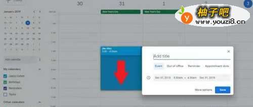 拖放事件在谷歌日历上可以手动编辑或者只拖动和调到需要的日子。