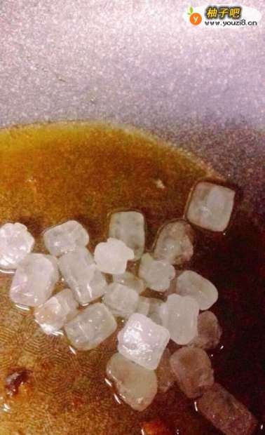 4冰糖炒出冒泡的时候,马上下腌好的肉去翻炒,以便均匀的裹上糖色。