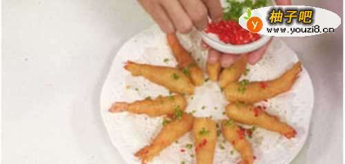 11将牙签取出,把炸好的虾仁装盘。