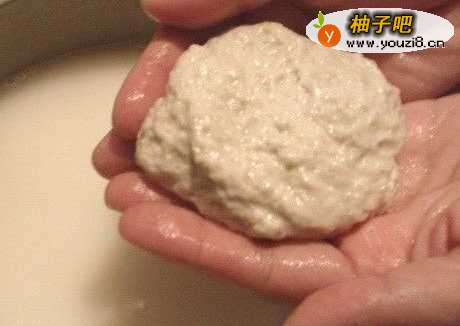 首先我们需要面团一块,用手揉硬一点,再加点水,弄成面筋。