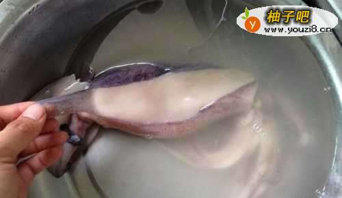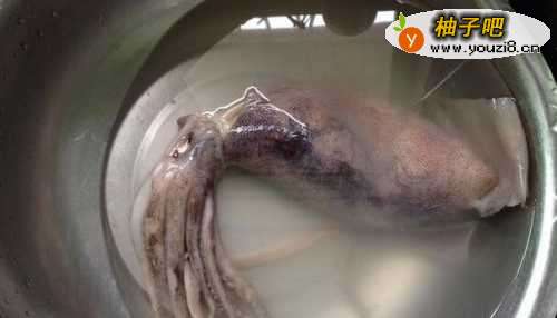 鱿鱼放入水里,倒入10克左右白醋,浸泡10分钟。
