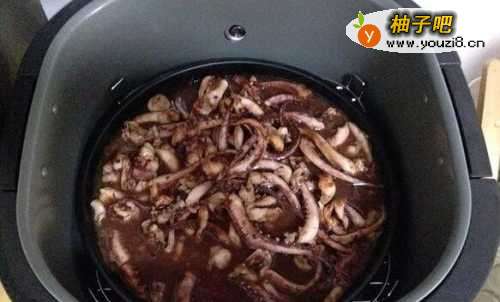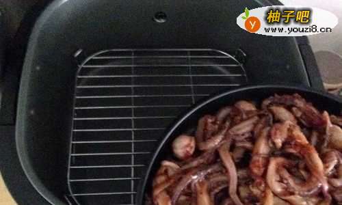 5腌制好的鱿鱼放入烤盘里。