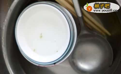 3碗、碟、筷有油腻时,要将洗碗布上或碗碟上洒点食用碱,再擦洗碗、碟、筷,油腻很快就去掉了。再有用热水去油腻更好。