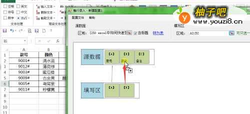 5把填写区中的"B"拖动到源数据的"B",单击【开始录入】,如铲茄图