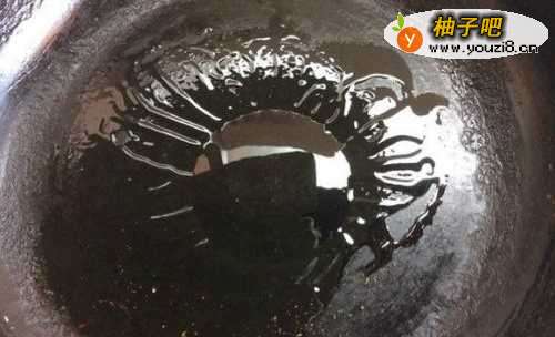 2然后,我们要往平底锅里倒油,不用太多,适量即可,如图所示