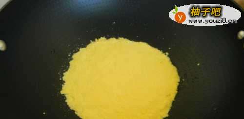6炒锅热油,炒熟鸡蛋,炒的时候要直接搅散