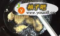 7起油锅,油热后下锅,可以试着放一块葱,下锅反应剧烈即可投料。虾仁需要分散下锅,避免粘在一起。炸定型后出锅,待全部食物全都炸定型后,再回锅复杂,上色均匀出锅