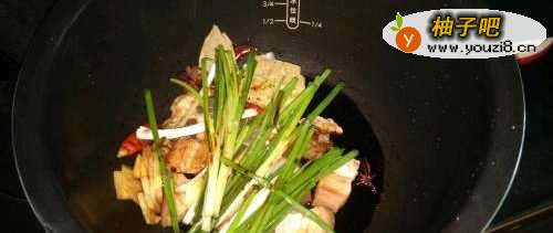 2五花肉好了,把所有材料放到里面,加水刚没过五花肉就可以了!定时煮110分钟。