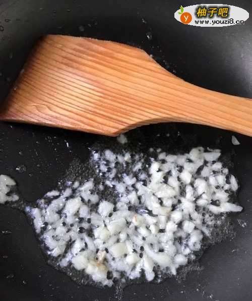 2锅烧热,放油,把蒜米倒入,放入南瓜