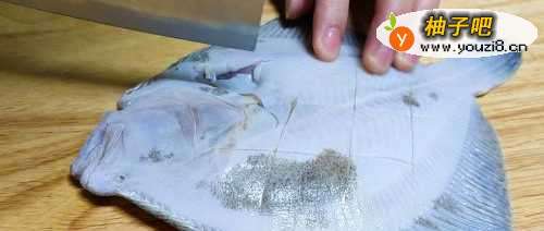 2用流动水把多宝鱼多清洗几下,在鱼背打上花刀,再把鱼肚打上花刀方便入味