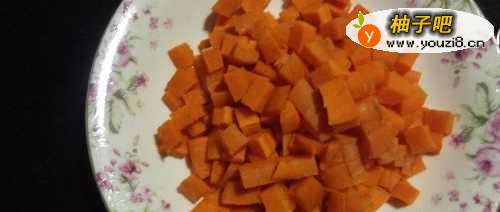 2将胡萝卜洗净,胡萝卜切小丁,装盘备用。