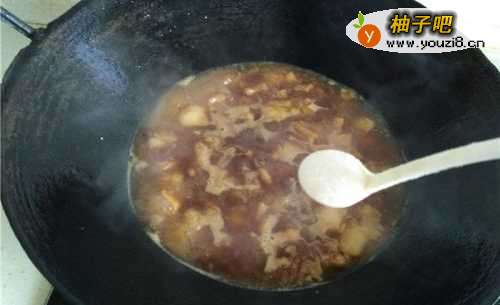 8两者都加完以后大约翻炒一分钟,加入五百毫升左右的开水。