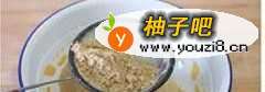 黄豆面放入无油无水的锅里,小火不停的翻炒,黄豆面的颜色由淡黄色变为深土黄色。