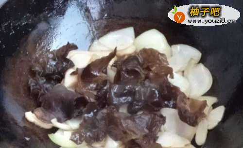 4炒锅放油加热,姜入锅煸香后洋葱入锅翻炒