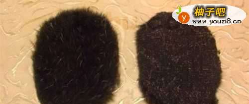 11用黑色毛绒绒布料剪两块小一些的布做头部。