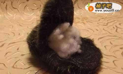 7用黑色毛绒绒布料剪两块做身体。