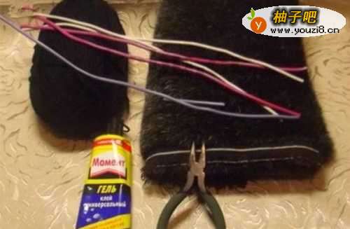 4在每根电线上涂点胶水,然后用黑色毛线慢慢绕上去,绕完一根再下一根