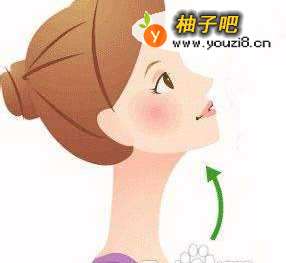 同样是抬起头,固定好下巴微微上仰的姿势,稍微张开嘴巴,舌头伸出来,并尽量往斜上方拉伸,但注意不要卷起舌头。