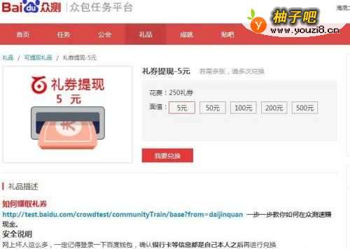 7百度众测任务完成获得的礼券可以兑换丰富的礼品,最核心的是可礼品