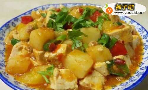 酱烧马铃薯豆腐煲,作法类似麻婆豆腐,只是多加了马铃薯,口感更好了。