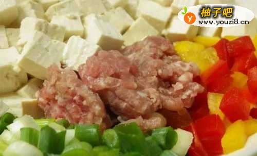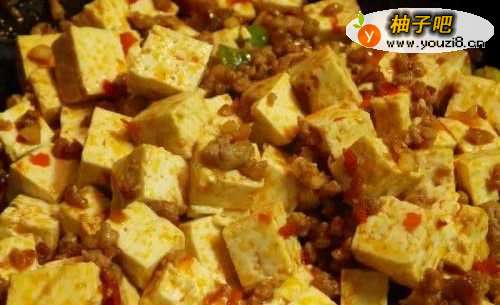 3绞肉先炒熟后再下蒜末炒香,下豆瓣酱拌炒,再加入豆腐及一茶匙的酱油跟1/2匙的糖及水焖煮一下。
