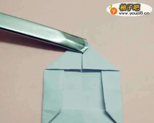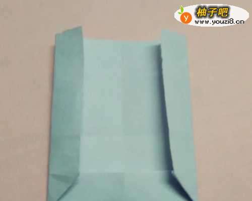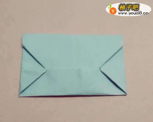 6把左上角和右上角往纵向的中心线上折,按平。