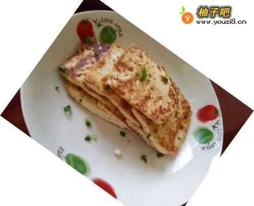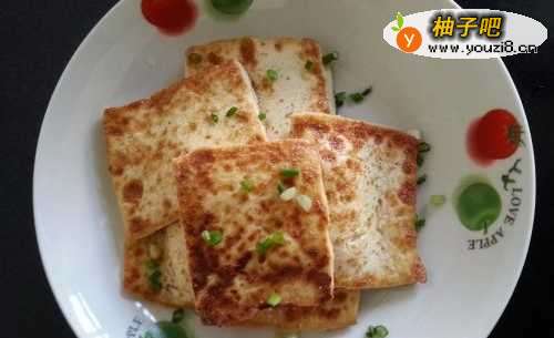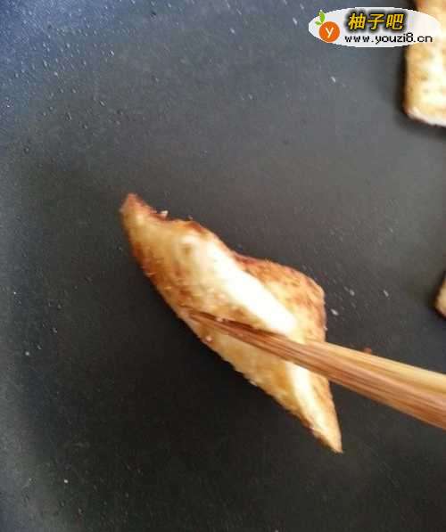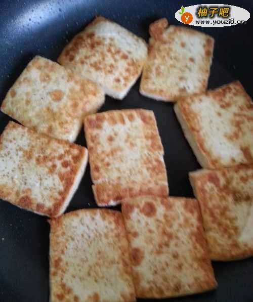 豆腐冲洗一下,切成片,嫩豆腐口感更好,老豆腐容易煎,选哪种随意