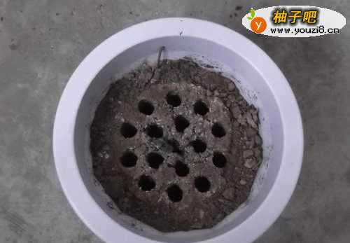 2二、取另一块煤灰,敲碎,把灰块填在花盆和第一个灰块周围。