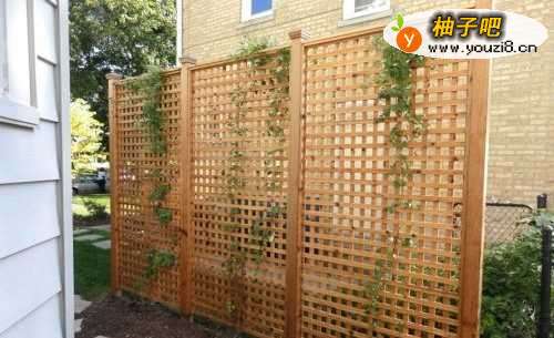 4我们也可以在墙面上安放有一定厚度的装饰性的管子,然后花格直接固定到踢脚和管子上,整体美观度也很好。