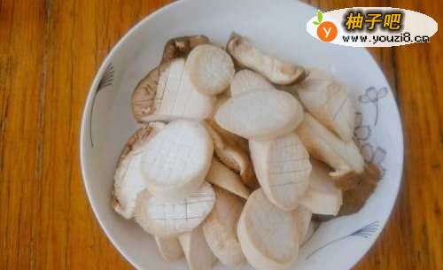7把杏鲍菇盛放在盘子中间,淋上锅里的汤汁即可。