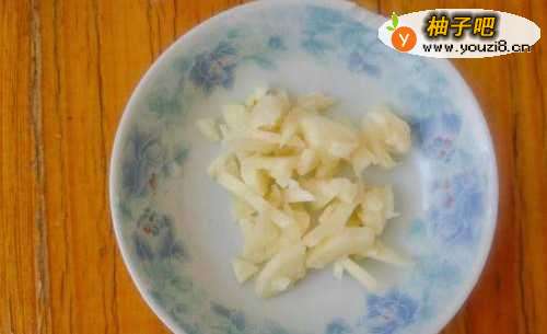 6:热锅倒油,煸香蒜末后,倒入杏鲍菇。