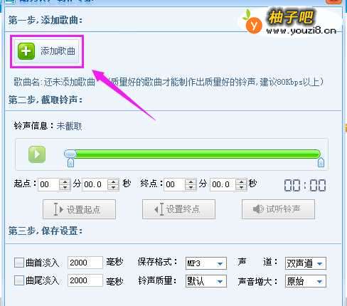 6接着我们来到铃声制作,把歌曲导入,如图。