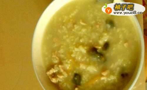 5锅内加热水,放入泡过的大米,加入瘦肉丁,葱姜末,搅匀,最后放上皮蛋丁,煮开即可。一般时间是30分钟